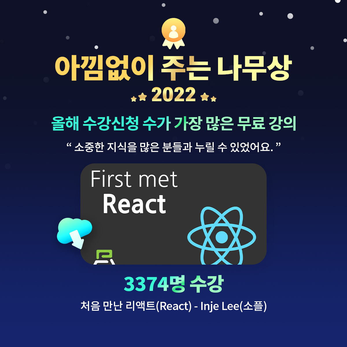그래서 생각지도 못하고 있던 2022 인프런 연말어워드에서 아낌없이 주는 나무상을 수상하게 됐습니다.