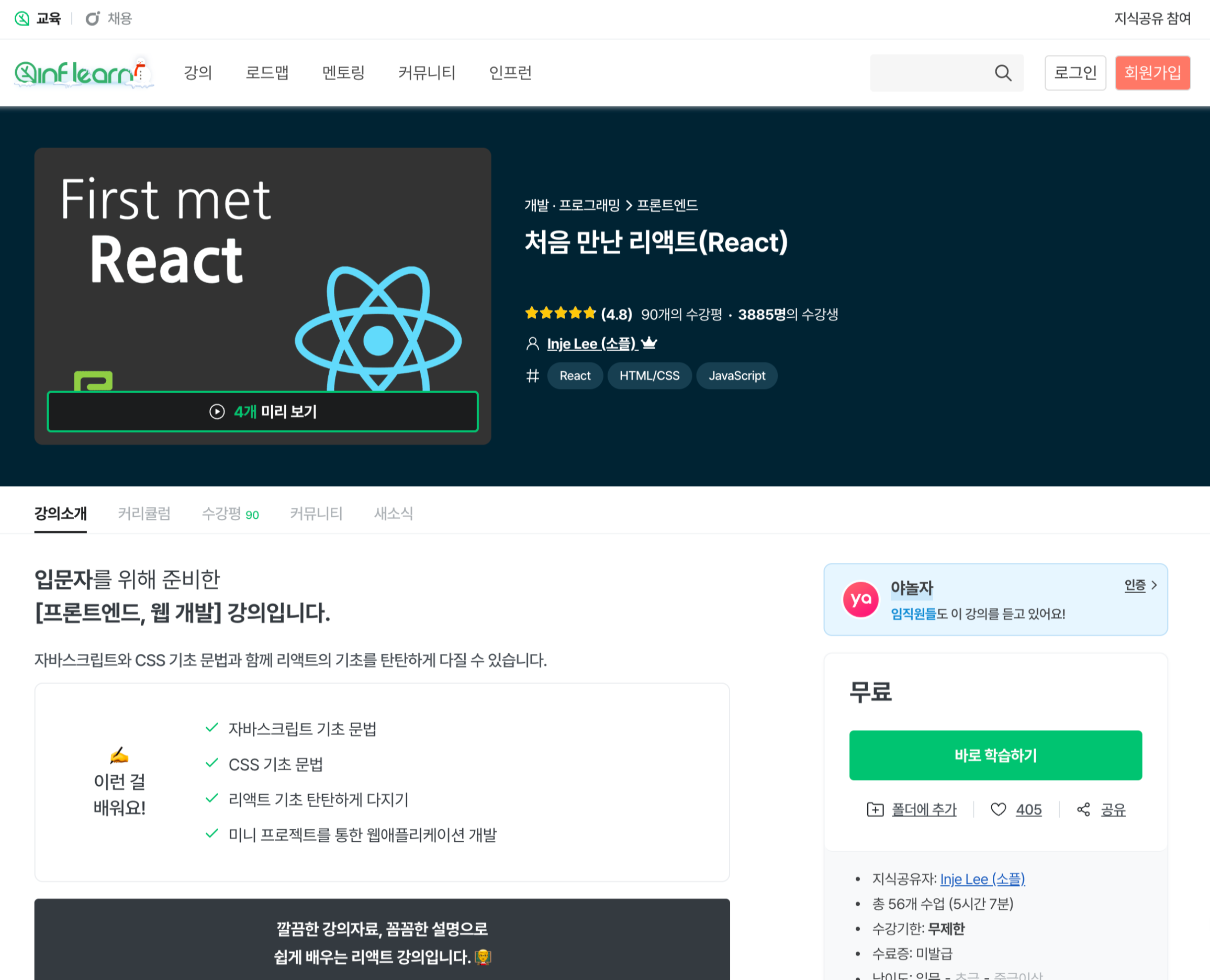 그리고 책과 함께 새롭게 제작한 처음 만난 리액트 강의도 생각보다 정말 많은 분들께서 좋아해주셨습니다.